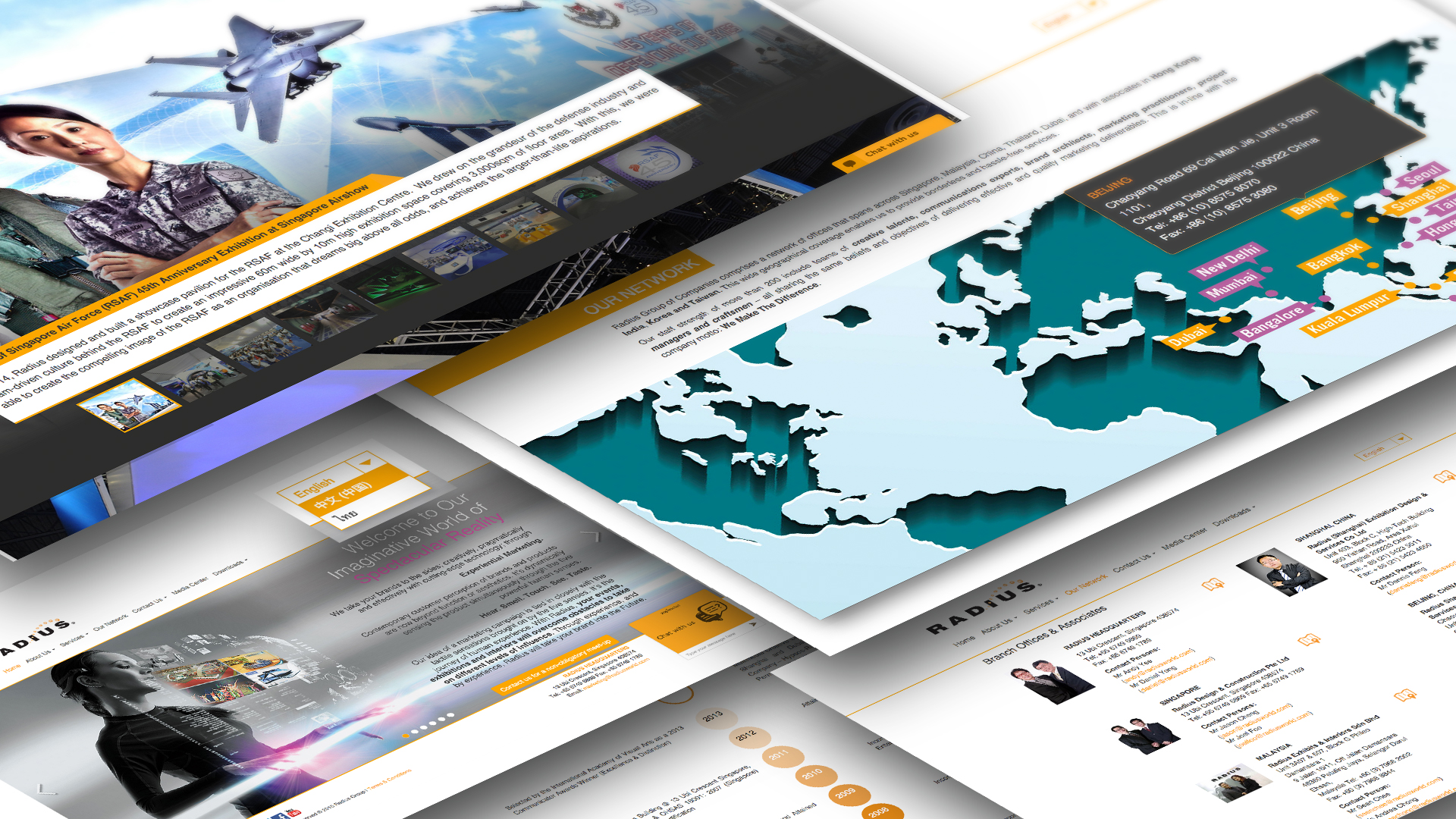 With such a holistic and detailed background, Radius Group requires a website which showcases and encapsulates all the information in a concise manner. With the use of multiple web presentation techniques, we are able to present all the information to the users with ease. We used different styles for each segment of radiusworld.com because each of the segments is different in terms of data and content.