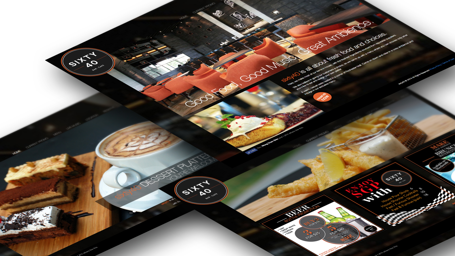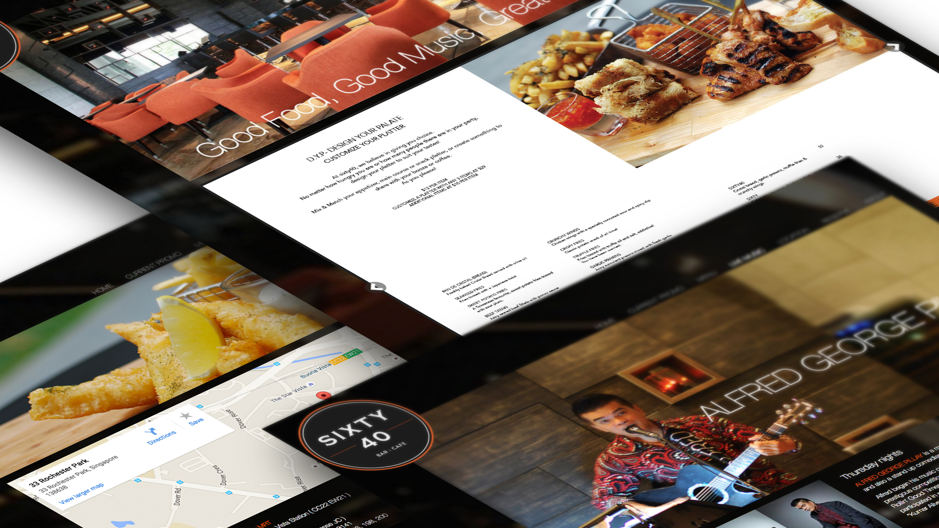 Working with a PR company which defined the identity of Sixty40, Hoovix set out to extend the look and feel of Sixty40 to users who are browsing the website, be it on the mobile or desktop. While delivering a consistent experience across most mobile phones and tablets and on different browsers across the PC or MAC operating systems, the site exudes the style of Sixty40’s interior furnishings and most importantly, the tasty food which the outlet serves.